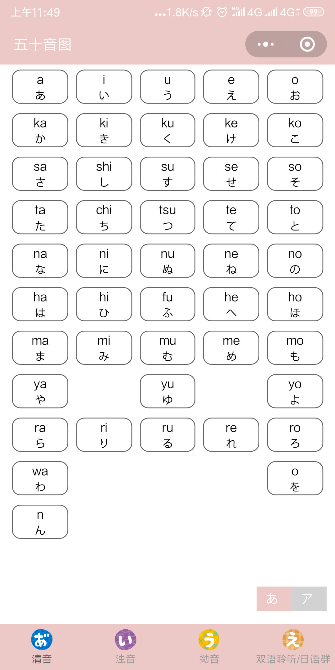 五十音 拗音表のギャラリー